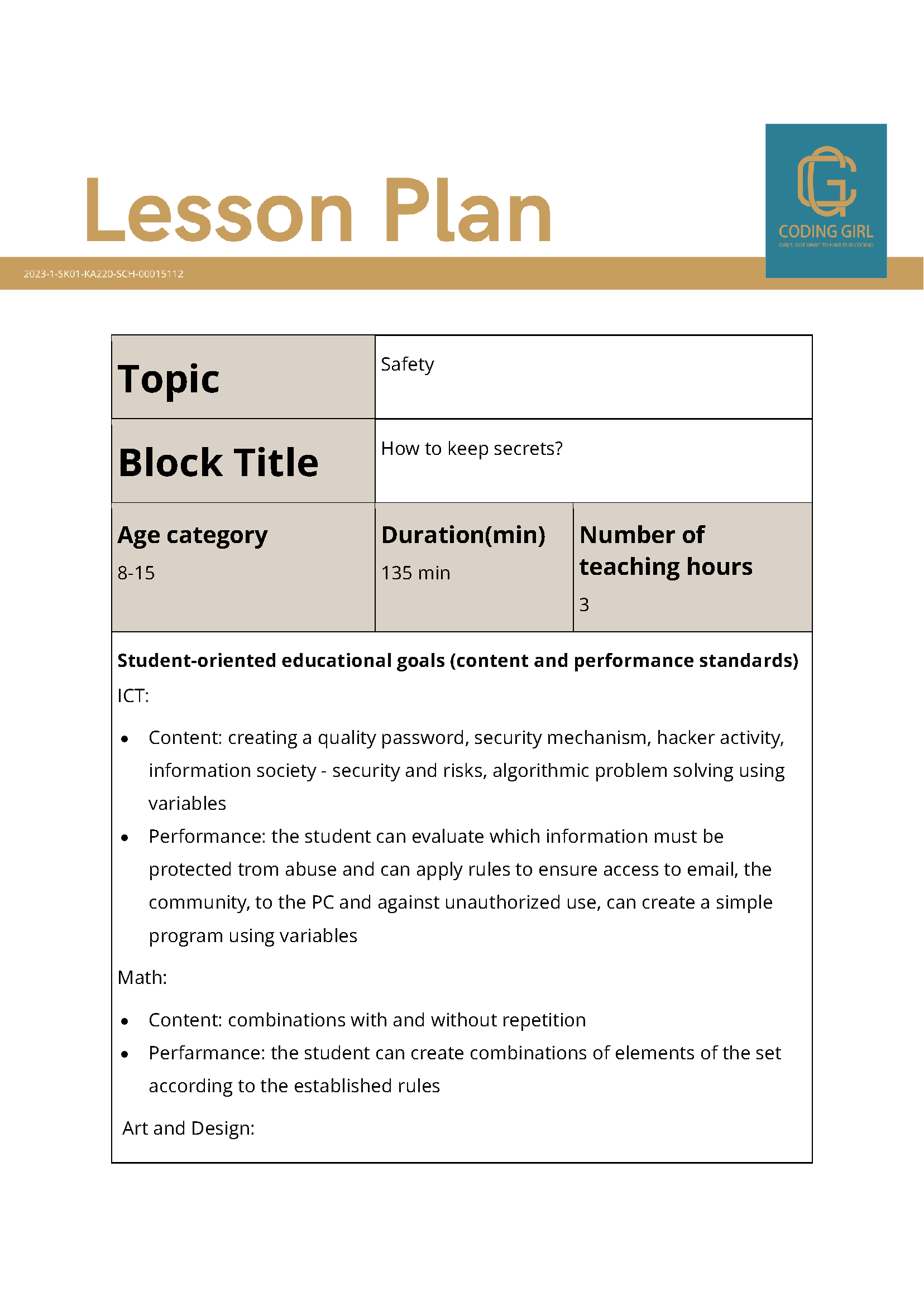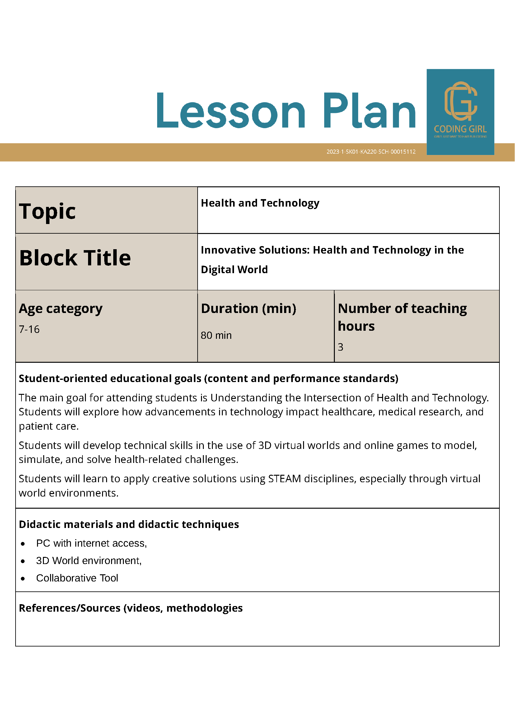 The hackathons produced > 25 lesson plans across the consortium, which integrate coding and STEAM principles into everyday classroom practice. All lesson plans were refined, translated into English, and compiled into the CodingGirl Compendium, serving as an open resource for teachers.