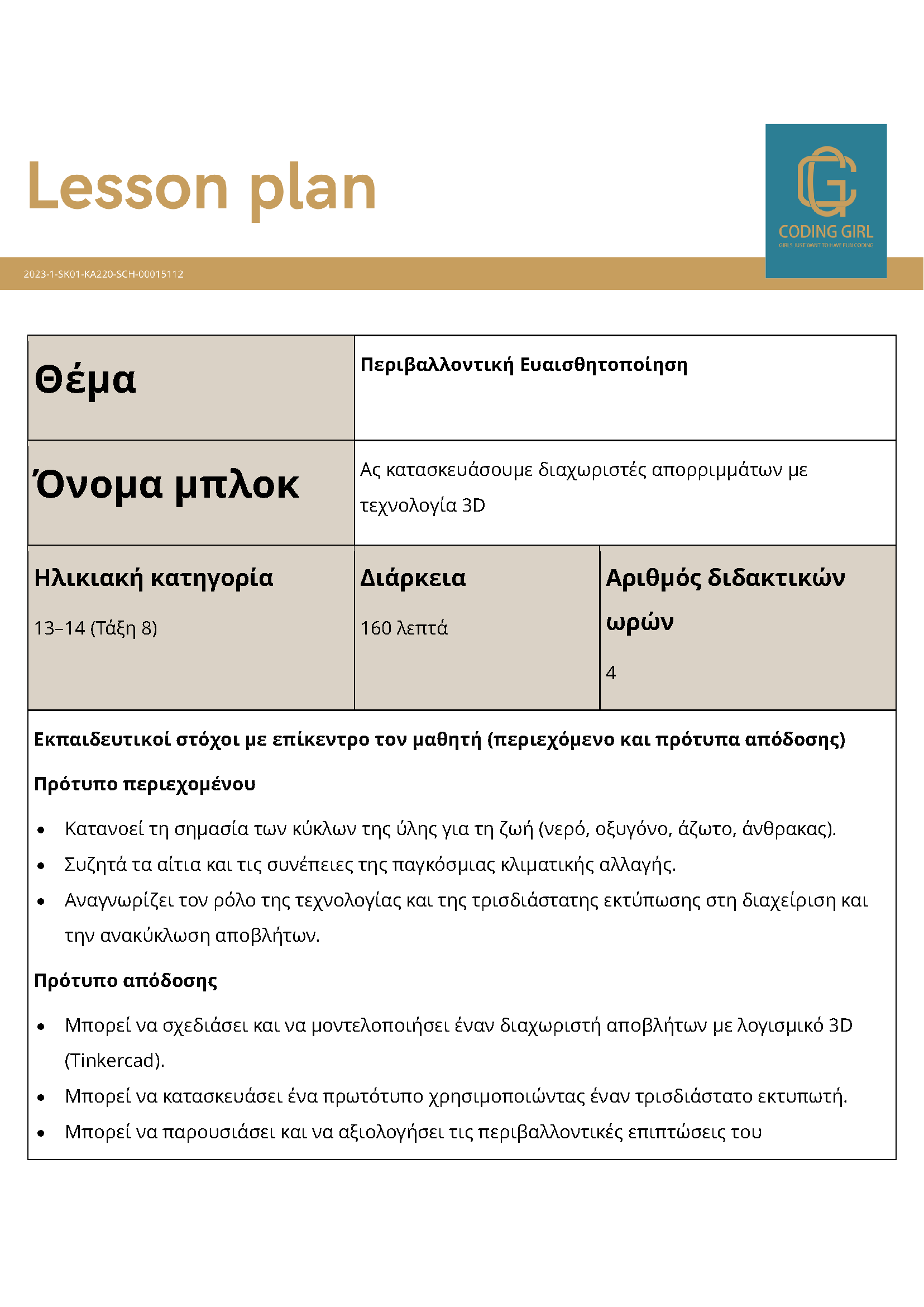 Τα hackathons παρήγαγαν > 25 σχέδια μαθήματος σε όλο το consortium, τα οποία ενσωματώνουν τις αρχές του προγραμματισμού και του STEAM στην καθημερινή πρακτική της τάξης. Όλα τα σχέδια μαθήματος βελτιώθηκαν, μεταφράστηκαν στα αγγλικά και συγκεντρώθηκαν στο CodingGirl Compendium, το οποίο λειτουργεί ως ανοιχτή πηγή για τους εκπαιδευτικούς.