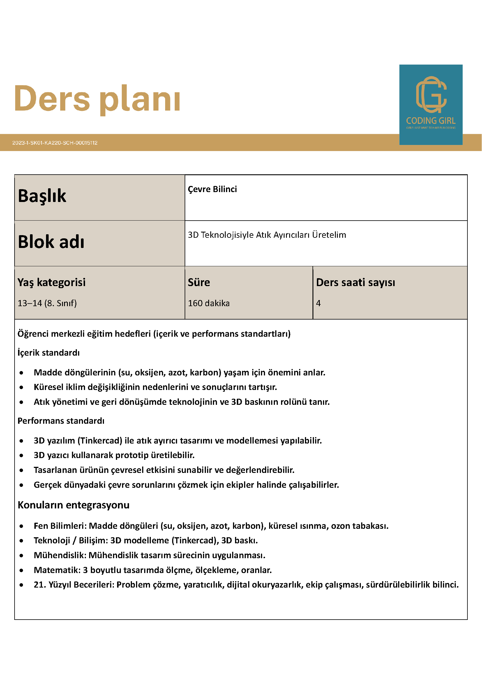 Hackathonlar, konsorsiyum genelinde kodlama ve STEAM ilkelerini günlük sınıf uygulamalarına entegre eden 25'ten fazla ders planı üretti. Tüm ders planları iyileştirildi, İngilizceye çevrildi ve öğretmenler için açık bir kaynak olarak hizmet veren CodingGirl Kompendium'da derlendi.