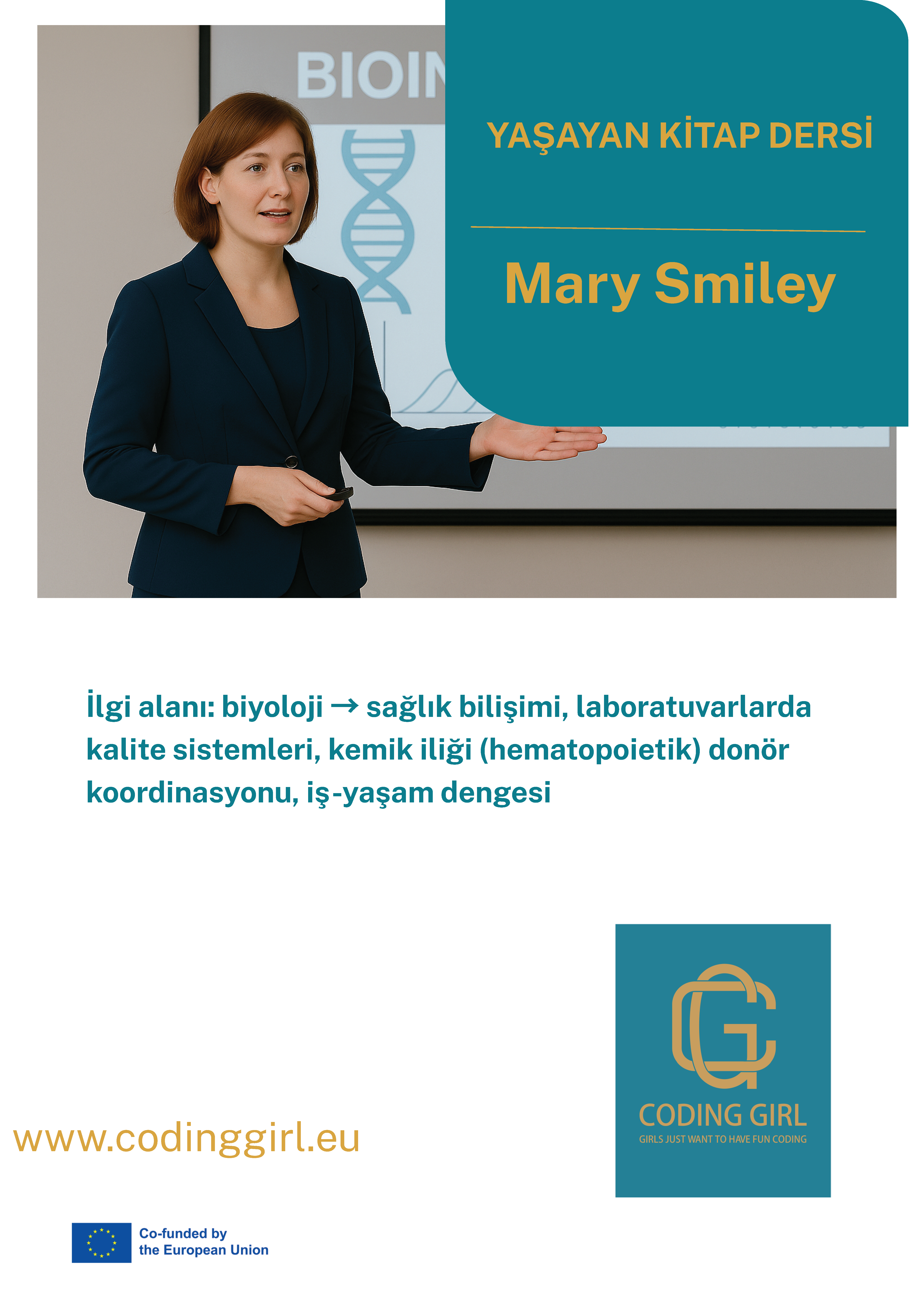Η Μέιρι Σμαΐλι είναι βιολόγος από την Πάτρα, της οποίας το έργο γεφυρώνει την εργαστηριακή επιστήμη με την ψηφιακή τεχνολογία στον χώρο της υγείας. Έχει αποκτήσει Πτυχίο στη Βιολογία και Μεταπτυχιακό στη Βιολογική Τεχνολογία από το Πανεπιστήμιο Πατρών, καθώς και επιπλέον σπουδές στη Διοίκηση Μονάδων Υγείας και στην Επιθεώρηση Συστημάτων Ποιότητας. Το ακαδημαϊκό της υπόβαθρο της παρείχε τόσο επιστημονικές όσο και οργανωτικές δεξιότητες, απαραίτητες για εργασία σε απαιτητικά ιατρικά περιβάλλοντα.